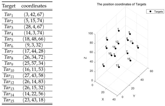 The coordinate positions of the (i-th target) () are shown in Figure 15.
