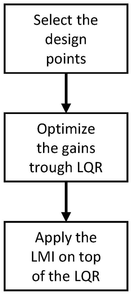 Combining the set of LMI shown in Equation (33), and a focus on performance improvement through LQR, a methodology for designing a fuzzy gain scheduling controller is proposed following the steps shown in the flowchart in Figure 4: