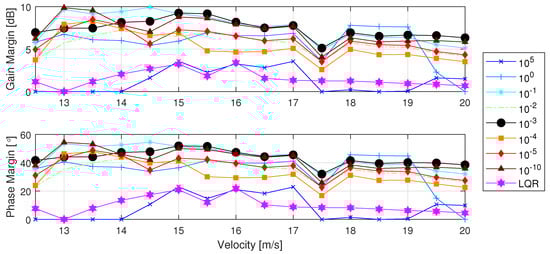 A problem in controller synthesis using linear techniques is that the linearized model represents the dynamics only in a region close to the operation point, in some cases leading to system instability when the model is subjected to significant variations, a common situation for flexible aircraft. A wide range of linear control techniques can address this issue, such as robust control, which deals with systems uncertainty [8,9,10]. Nonlinear techniques, such as adaptive control, can also be applied, which proposes predefined dynamics for the feedback gains that ensure stability and performance. These techniques often result in complex control laws that are hard to implement in practice [11,12].