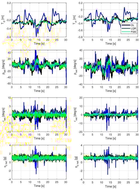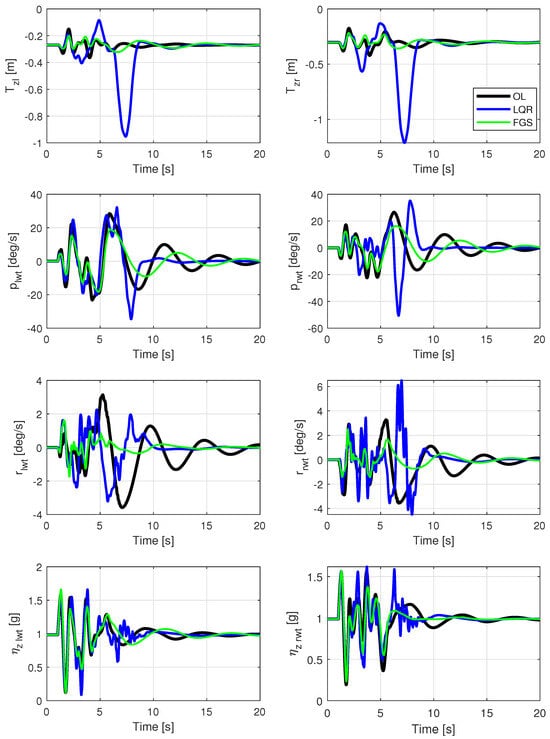 Examining both Figure 14 and Table 4, it is evident that the highest attenuation was achieved through the controller designed with LQR for lateral motion. However, the FGS design can ensure stability at intermediary points while still offering some improvement over the open-loop response.