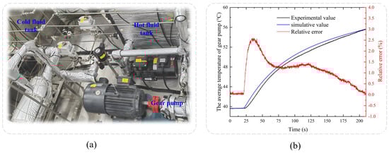 The comparison between simulation and experiment is presented in Figure 9b. The results indicate that the predicted average temperature of the gear pump is in good agreement with the actual measured value. The maximum error occurred during the switching of the cold and hot working fluids, with a maximum relative error of 2.6%. The average error throughout the simulation process was 1.07%. These errors are all within acceptable range, which verifies that the established heat transfer model performs well in terms of accuracy and reliability.