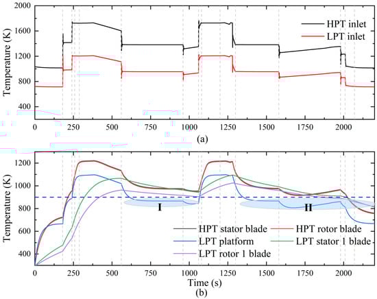 With the continuous advancement of aviation technology, particularly driven by the demands for higher thrust-to-weight ratios, greater efficiency, and lower emissions, the next generation of aero-engines is evolving towards increased complexity and higher efficiency. To meet the increasingly stringent performance requirements and compact engine designs, the thermodynamic cycle of aero-engines is being progressively enhanced []. Meanwhile, the widespread application of advanced stealth materials with low thermal conductivity has further intensified the thermal challenges faced by engines [,]. These developments not only require the engine to have higher power output, but also need to cope with more complex thermal management challenges. Consequently, effective thermal management has become a critical issue in aero-engine design, ensuring safe and stable operation under extreme conditions of high temperature and high pressure []. In this context, establishing a comprehensive transient temperature evaluation model applicable across the entire flight envelope is fundamental to engine thermal management.