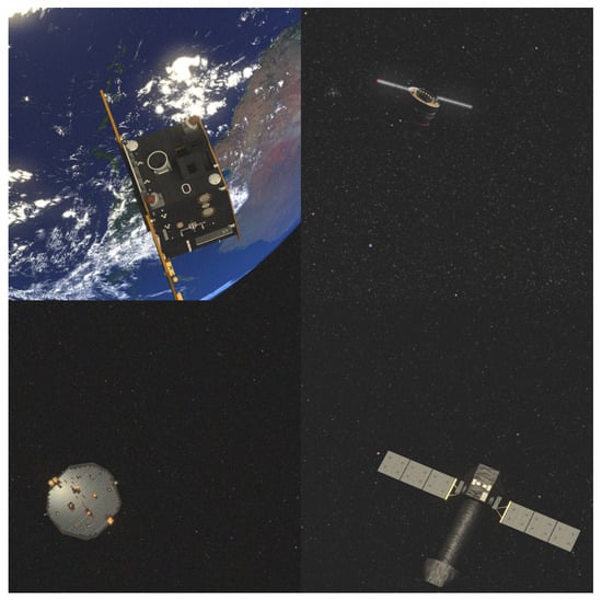 - Kisantal, M.; Sharma, S.; Park, T.H.; Izzo, D.; Märtens, M.; D’Amico, S. Satellite Pose Estimation Challenge: Dataset, Competition Design, and Results. IEEE Trans. Aerosp. Electron. Syst. 2020, 56, 4083–4098. [Google Scholar] [CrossRef]
