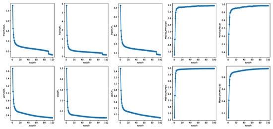 From the above definitions, it can be understood that Precision is the proportion of actual positive samples among all those predicted as positive, representing the accuracy of the model in positive predictions. Recall is the proportion of predicted positive samples among all actual positive samples, reflecting the ability of the model to recognize positive samples. is defined as the area under the Precision–Recall curve at a specific IoU threshold, which can be expressed as Equation (11), and mAP is the mean of the values for all C categories, which can be demonstrated as Equation (12).