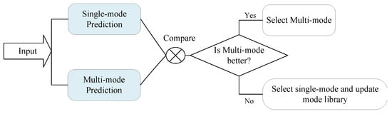 Given the uncertainty regarding the effectiveness of historical mode data for new data prediction, this study trains both single-mode and multi-mode prediction models separately on new data. Subsequently, the performance of these two models is evaluated and compared to determine whether updates to the historical mode repository are required. The specific workflow is illustrated in Figure 5. It is crucial to emphasize that the model selection in this section operates at the level of individual batches. In other words, even for the same mode, its predictive performance may vary across different batches due to persistent differences in statistical properties between batches. Therefore, it is necessary to select distinct prediction models for different batches.