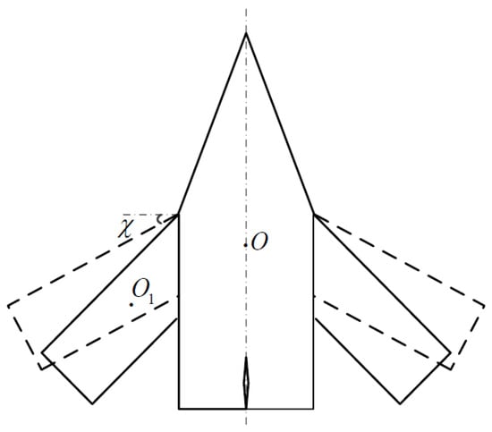 The morphing mode of a class of a variable-sweep hypersonic vehicle that we studied is presented in Figure 2. Let the sweep angle of the wing be , the morphing of the HMV is the simultaneous change in both wing trailing sweep angles, and , where are the upper and lower bounds of the sweep angle, respectively. Define the morphing rate as