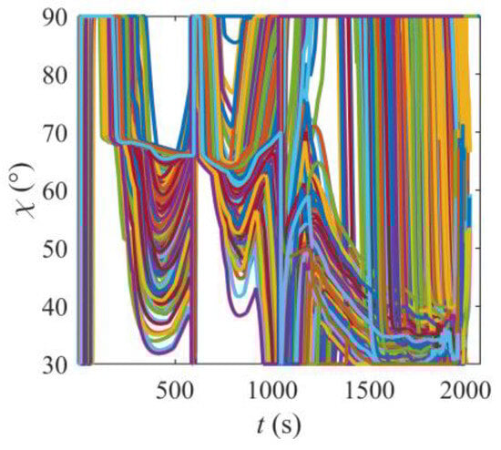 where , , and are the minimum constraint values of the angle of attack, bank angle, and sweep angle, respectively; , , and are the maximum constraint values of the angle of attack, bank angle, and sweep angle, respectively.