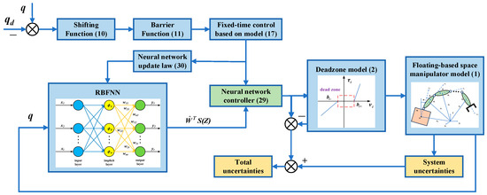 In the research of fixed-time convergence, linear systems predominantly garner attention. However, the space robot, as a prototypical nonlinear system, confronts the challenge of unavailable or inaccurate actual parameter values, complicating precise control and diminishing tracking performance. In addition, due to the interference of harsh environmental factors in space, uncertainty may exist in the model of the space robot. To address the issue of dynamic model uncertainty in nonlinear systems, neural networks have garnered significant attention from numerous scholars. Among them, the radial basis function neural network (RBFNN) stands out due to its straightforward structure, high fitting efficiency, exceptional nonlinear approximation capabilities, and advanced global approximation capabilities. It excellently compensates for unknown elements within dynamical models, making it one of the most commonly used methods for addressing nonlinear control model uncertainties. Ref. [