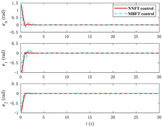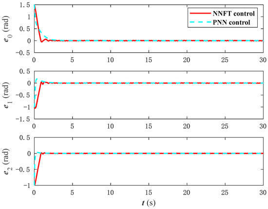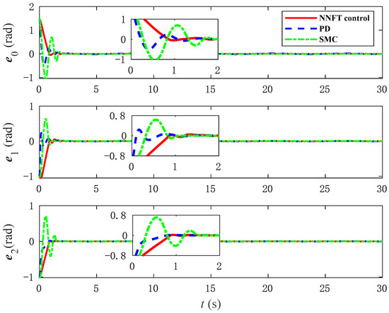 Figure 8. It is evident that the tracking error of NNFT control is smaller than that of the previous model-based control, with a faster convergence speed that rapidly converges to zero and exhibits minimal fluctuations. For a clearer visual comparison,