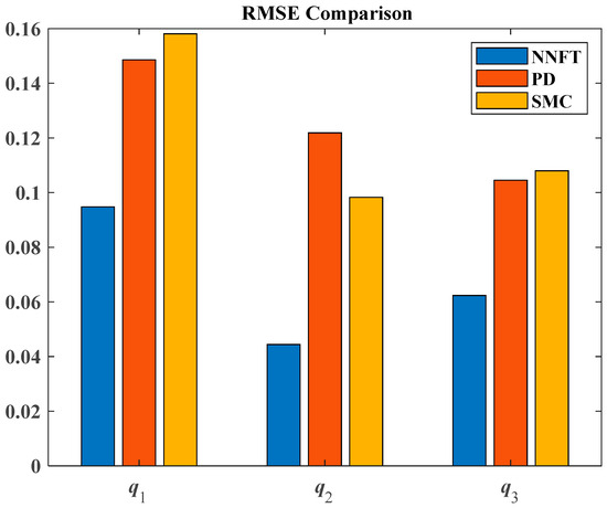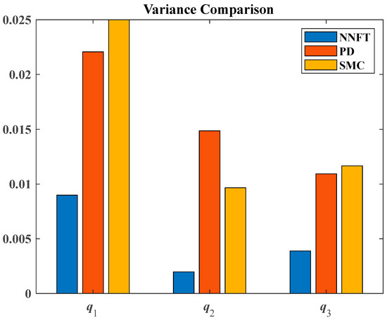 Figure 19 show the variances and root mean square errors of the three control methods, respectively. The bar charts indicate that the proposed control method has smaller error values, and has advantages. Based on the comparative analysis, the advantages of the fixed-time control method based on neural networks proposed in this paper are evident, demonstrating practical significance.