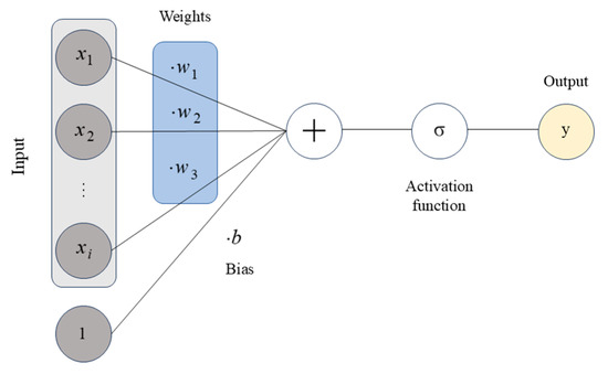 A DNN is a model composed of multiple layers of interconnected neurons, where each layer contains several neurons that learn to establish complex mappings between inputs and outputs. Figure 3 presents a schematic diagram of a single neuron. The output of the neuron is defined as:
