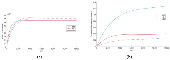 In order to further verify the effectiveness of the proposed control algorithm, the model constructed in this paper is compared with the Stackelberg equilibrium–based (MSE) model reference adaptive control (MSE) algorithm and the single–step predictive Stackelberg equilibrium (SSE) algorithm [24] as well as the non–zero–sum Nash equilibrium (NE) algorithm [18], and the simulation results are now presented as follows.