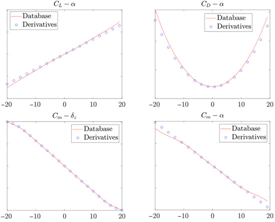 A continuous static aerodynamic model was obtained through data interpolation, as follows: