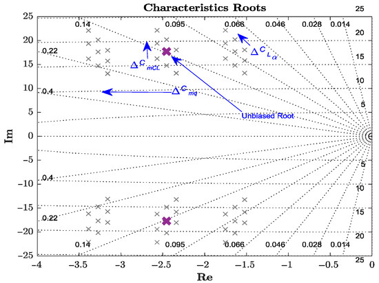 Figure 7. Influence of aerodynamic model error on missile roll dynamic characteristic roots.