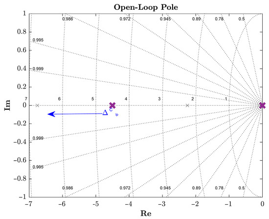 In conventional missile control architectures, the roll channel typically operates independently with negligible dynamic cross-coupling to the longitudinal and directional channels. The magnitudes of C l α and C l β are small in comparison to C n α and C n β . Therefore, the influence of aerodynamic derivative deviations on the roll channel is primarily concentrated on two key derivatives, C l 0 and C l p ¯ . Figure 7 shows the eigenvalues of the rolling channel motion modes. The spiral mode can be categorized into the following two types: the spiral mode and the convergent mode. The spiral mode, characterized by a root close to the origin, exhibits critical stability behavior similar to the phugoid mode and remains largely unaffected by aerodynamic derivative deviations. In contrast, the convergent mode is influenced solely by the derivative C l p ¯ , and its stability margin is directly proportional to the value of C l p ¯ .