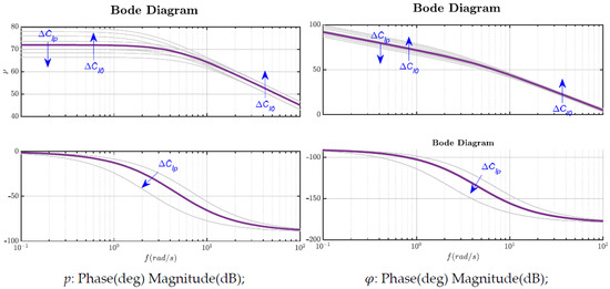 Figure 6. Influence of aerodynamic derivative deviation on missile longitudinal dynamic logarithmic frequency characteristic.