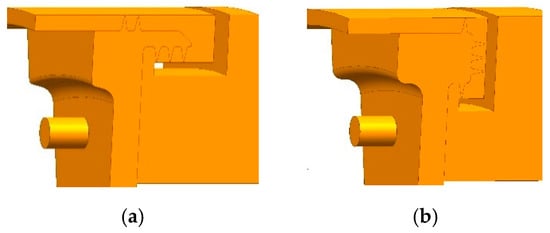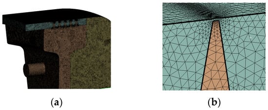 This paper replicates the model from the literature [28] to validate the correctness of the numerical method, as illustrated in Figure 10. The wind resistance temperature rise characteristics of the labyrinth seal are analysed using the identical meshing technique and boundary condition settings outlined in Section 2.2, along with the same operational conditions referenced in the literature. The temperature differential between the inlet and outlet sections of the labyrinth seal is extracted as the wind resistance temperature increase. Table 4 presents the comparison between the calculated values and the literature [28]. The relative inaccuracy of the wind resistance temperature increase in the labyrinth seal section is 4.06%, satisfying the accuracy criteria of the solution.