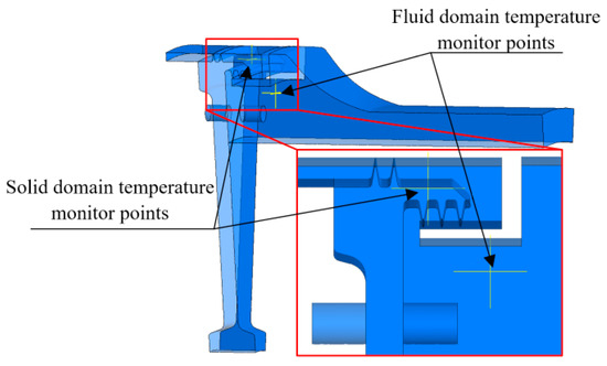 The traditional geometric model aligns with the model presented in Section 2.1, as illustrated in Figure 4. The grid division utilises the validated 1 mm grid scale. The temperature monitoring sites are established in both the fluid and solid computational domains, as illustrated in Figure 15.