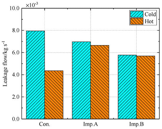 The changes in the leakage of improved structure A (cold clearance of 0.3 mm).
