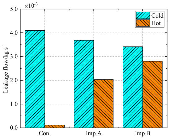 The changes in the leakage of improved structure B (cold clearance of 0.3 mm).