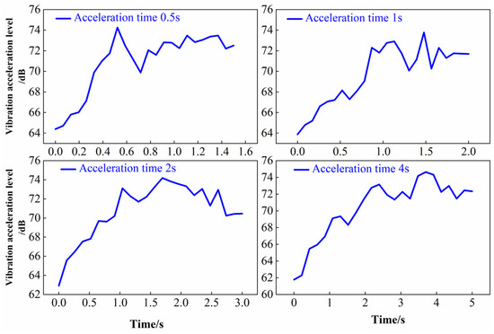 4.3.1. Effect of Acceleration Time on Vibration Characteristics