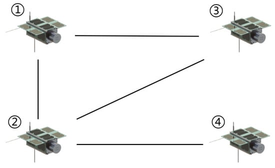 Due to communication resource constraints, each spacecraft can only communicate with a limited number of other spacecraft. An adjacency matrix  is defined to describe inter-satellite communication, specifically expressed as