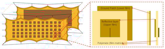 Phased array antennas, in particular, are seeing rapid development across satellite communications, microwave remote sensing, and Earth observation [5]. For spaceborne synthetic aperture radar (SAR), the increasing demands for wider bandwidths and finer resolution have led to the adoption of large-scale active planar phased arrays [6,7]. Compared with conventional rigid-shell structures, flexible thin-film phased arrays enable higher aperture efficiency and lighter weight, offering advantages for stowage and on-orbit deployment.