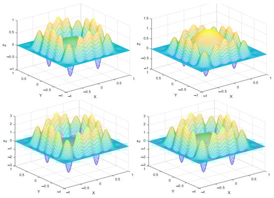 The antenna unit deformation patterns corresponding to the 20th-order fitting results are given in Figure 7 The center patch region deformation and the outer film region wrinkle deformation were independently controlled using two parameters. Using this function, antenna deformation could be approximate estimated. In the following sections, electromechanical coupling modeling of the antenna is performed based on this function to analyze the electrical properties of unit and phased array antennas.