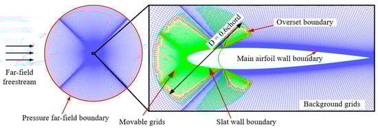 In simulations, the value of the overlapping grids in the field will be redefined without regeneration of all sub-grids, which thereby significantly simplifies the simulation workflows. For multi-element airfoils, the common meshing method is faced with challenges in precise definition of relative motions and high-fidelity simulations of unsteady flow in narrow gaps. In contrast, the overlapping grid approach is more suitable for this situation.