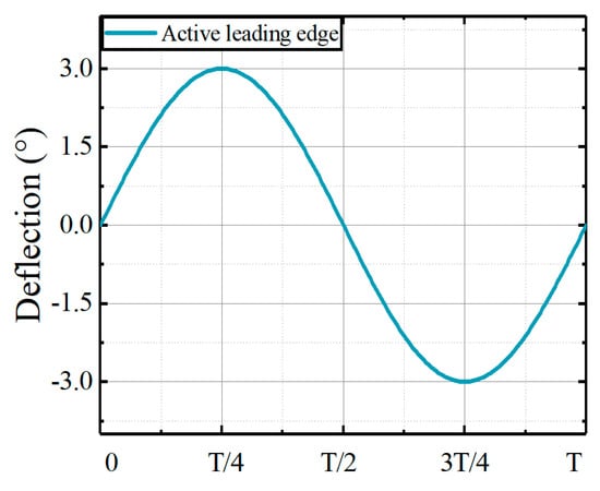 In this section, the identification of coefficient matrices between the dynamic components of aerodynamic loads and the deflections of the active leading edge was conducted. The deflections of the active leading edge are illustrated in Figure 7.