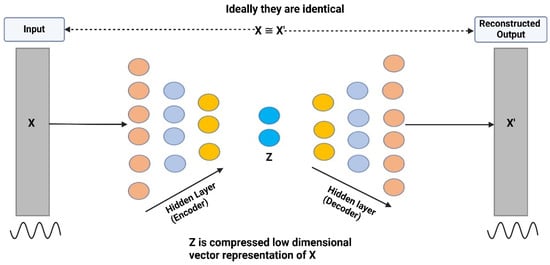 The idea of Autoencoder originated in the 1980s and later promoted by the seminal paper [21]. The primary aim of the autoencoder is predominantly centered on the reduction in the dimensionality of the input data to reduce the complexity of the dataset by minimizing the number of features, while preserving the fundamental characteristics of the original data. This aim is achieved internally through the utilization of hidden layer(s) designated as the encoder, which proficiently compresses the input data into a more simplified and concise vector representation. Thereafter, this condensed vector representation can be reconstructed via an additional set of hidden layer(s), termed as the decoder, to produce output data that corresponds with the dimensions of the initial input data. Both the encoder and decoder elements are composed of a series of neural network layers, including structures like Recurrent Neural Networks (RNN) and Convolutional Neural Networks (CNN), among others. If the characteristics of the input data were entirely independent from one another, the challenges of compressing and later reconstructing the data would be substantial. However, in cases where the data reveals a certain degree of inherent (underlying) structure such as correlations between input features, this structure can be captured and leveraged as the input passes through the hidden layer(s). The process of deriving crucial patterns from raw input data to create a concise knowledge representation that enhances comprehensibility and manageability is referred to as representation learning. Initially designed for the purpose of diminishing the dimensionality of input data, an autoencoder framework was subsequently modified to support representation learning in an unsupervised fashion. Throughout the evolution of this domain, various autoencoder network architectures have been formulated to serve a multitude of objectives, coinciding with progress in the realm of deep learning. Figure 3 delineates the architecture of the autoencoder as discussed above.