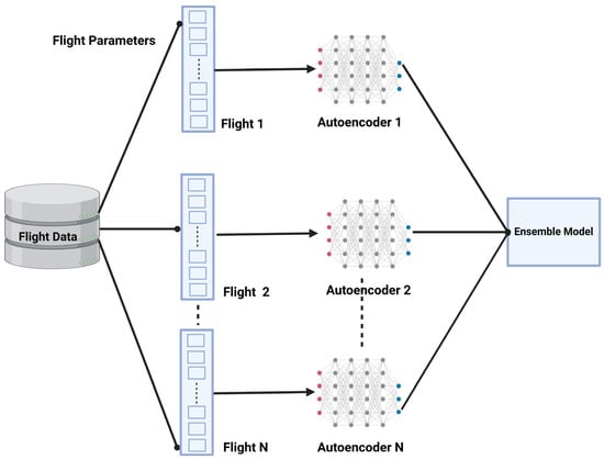For n flights, we established a corresponding n number of autoencoder units. By employing the ensemble methodology of machine learning, these units were amalgamated to produce a singular model, which was subsequently utilized to reconstruct the output. This strategy, referred to as the ensemble method, integrates the training processes of multiple models into a unified model. It has been noted that this methodology results in enhanced accuracy in the reconstruction of the original input when compared to the prior methods.
