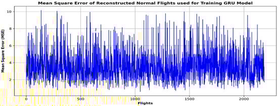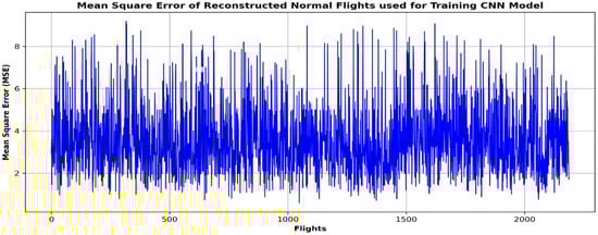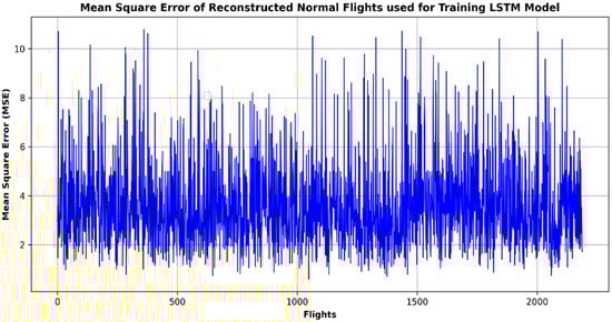 The maximum calculated MSE was 10.8. Figure 17 plots the MSE for all the 2189 normal flights reconstructed by this LSTM model.