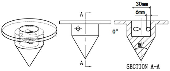 CFD modeling and numerical simulations were carried out to investigate the mixing and diffusion combustion characteristics of the oxidizer with gasified fuels in HRMs. This CFD modeling and analysis will then guide the optimization of the motor design based on the improvement of both the regression rate and combustion efficiency. The swirl injector creates an additional tangential velocity component besides the axial one related to the convention showerhead injectors in HRMs. This, in turn, enhances the mixing and heat transfer. Therefore, a swirl injector with four holes was used in this work to create enough swirl intensity for the oxidizer flow. The structure of the considered swirl injector is shown in Figure 1.