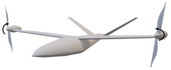 The complete prototype is modeled using CAD tools with a parametric philosophy and includes material properties that provide mass-densities-multipliers for different structures. This allows easier procedures when performing sensitivity analyses on the aircraft configuration. The parameters considered within the scope of this work can be found in Table 3 from References [8,19]. This last reference contains a further breakdown of the subsystems detailed on Figure 2. The values for , and have been extracted from the data sheets of both propellers and the engine mounted on the aircraft [20,21].