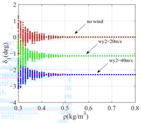 The wind speed magnitude is set to and when is the analytical parameter, and the derivative value of the transverse damping moment coefficient of the cubic term is set to when is the analytical parameter. The simulation results are shown in Figure 11.