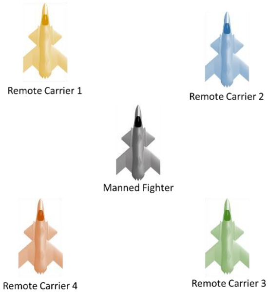 MUM-T systems leverage such decentralized architectures to increase flexibility, resilience, and mission efficiency. In this context, cooperative control strategies allow unmanned aerial systems (UASs) to dynamically share tasks, react to environmental changes, and support manned platforms without requiring explicit micromanagement [30]. Architectures enabling these behaviors are often aligned with principles of network-centric warfare (NCW), where connectivity and information superiority become key enablers of operational effectiveness [31,32,33], further emphasizing the need for scalable command and control mechanisms capable of orchestrating large UAV swarms in adversarial scenarios, as demonstrated in the 50 vs. 50 live-fly competition.