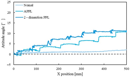 - The experiments also showed that the 2DPPL method effectively prevented a decrease in attitude angle. However, both the APPL and 2DPPL method resulted in unintended increases in the attitude angle.