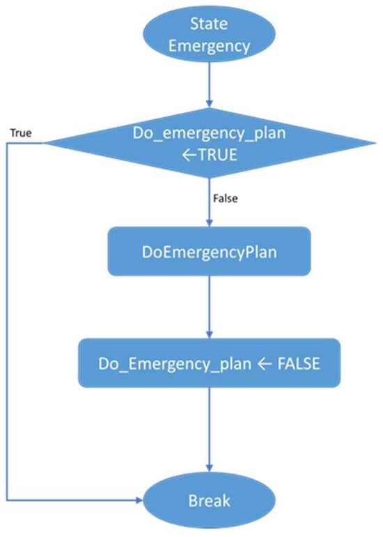- STATE_EMERGENCY: In the event of an alert being received from the vehicle monitoring module, an emergency protocol is enacted. This module directs the essential actions to be executed for the specified emergency.