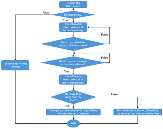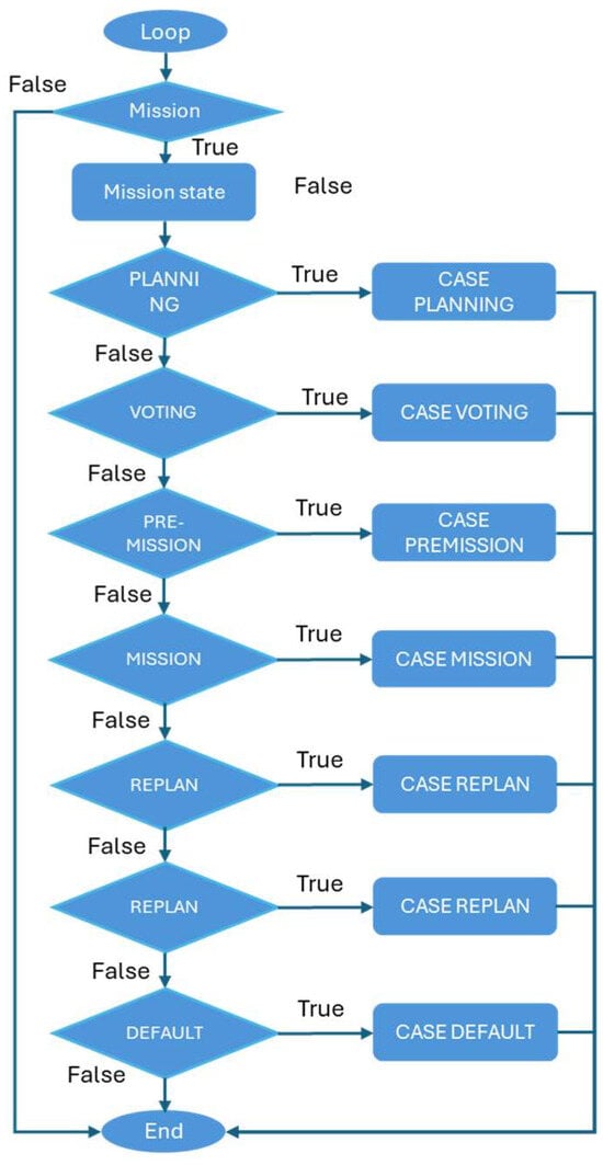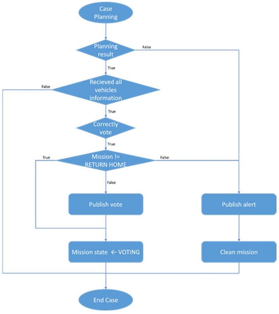 - MISSION_STATE_PLANNING: This state involves the computation of mission routes based on the number of vehicles needed for the mission. The assignment of each route to each aircraft is determined through a voting process, assuming the planning is accurate.