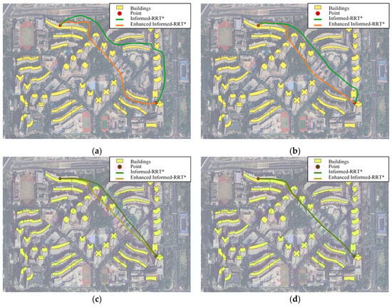 It is noteworthy that, in the actual operation of drone logistics, the straight-line distance often fails to accurately represent the flight path. Due to the presence of dense obstacles in urban environments, UAVs must frequently detour around obstacles. In this study, the Informed-RRT* algorithm with a spatial index structure is introduced for path planning, enabling the determination of the actual point-to-point flight distance (dij), which is subsequently utilized in a service coverage constraint assessment.