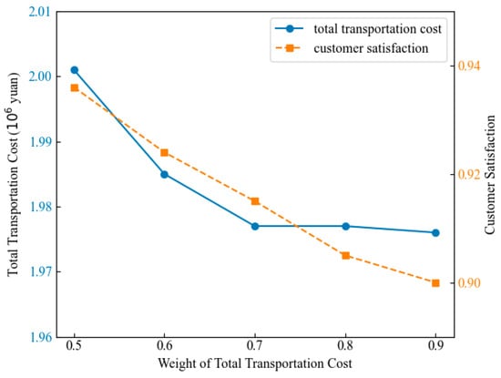 Both economic cost and customer satisfaction are key factors in UAV logistics delivery. They determine whether this industry can develop in the long term. Hence, this section selects the total transportation cost and customer satisfaction as the dual objectives for optimization, and the objectives are introduced as follows:
