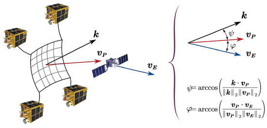 Furthermore, as illustrated in Figure 3, minimizing the impact of the evader on the net during capture requires reducing the angle between the velocity vectors of the virtual leader and the evader ( and ), as well as the angle between the net’s normal vector and the virtual leader’s velocity . Aligning these vectors will help ensure a smoother interception and mitigate potential deformation or damage to the net.