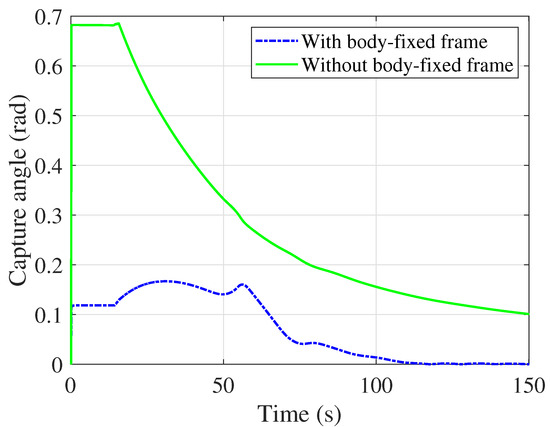 The variation in the capture angle under two different reference trajectories during formation tracking.
