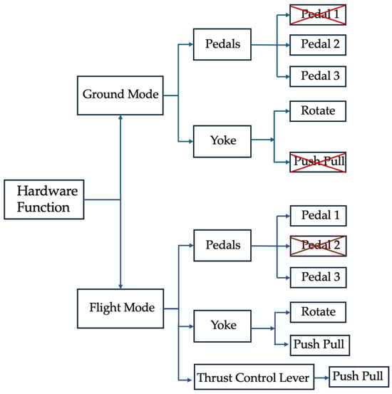 While this mode-switching mechanism simplifies the transition between driving and flying states, it may introduce potential mode confusion—a well-documented concern in human factors engineering. To address this, the proposed design incorporates several human–machine interface (HMI) safety principles. First, the current control mode is continuously displayed on the display panel, ensuring that the pilot maintains clear and immediate situational awareness. Second, before switching from ground mode to flight mode, the system requires the pilot to perform a full-range control surface check while the vehicle remains stationary. This procedure not only verifies the mechanical integrity of the control surfaces to prevent blockage or abnormal resistance but also allows the pilot to become reacquainted with the flight control logic in advance. These design considerations promote mode visibility, control consistency, and operational readiness, thereby reducing the risk of mode confusion and supporting the proposed configuration as a safe and viable baseline for further refinement.