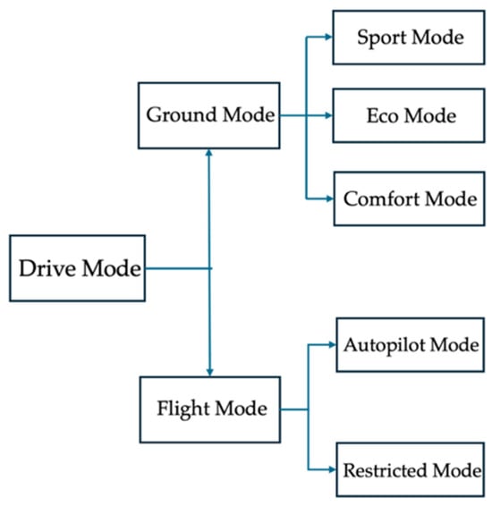 Currently, the research on flying car control modes mainly focuses on autonomous driving technology. Liu [8] has designed a dual-mode trajectory tracking algorithm to achieve precise trajectory control of flying cars under complex operating conditions. Pan and co-authors [9] have designed four driving modes for flying cars but have not conducted a safety analysis.