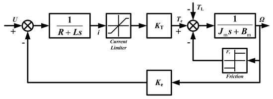 Taking into account nonlinear links such as internal current limiter and Coulomb friction, its topology is shown in Figure 2, where Ke is the back EMF coefficient, and the main parameters are shown in Table 1 below.