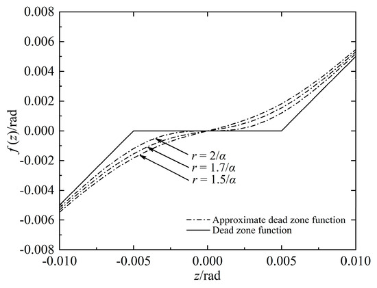 where a > 0 and r > 0 are the undetermined parameters, in order to analyze the degree of approximation to the dead zone function; the difference between them is defined as Δf(z)
