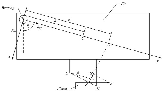 When the impact component S′ given by the piston acts on the impact center of the fin and is perpendicular to the Oy axis, that is, θ = 0, it satisfies