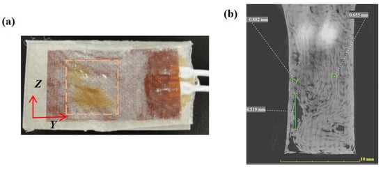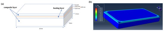The heating unit employs this five-layer composite material laminate, with the nichrome alloy serving as the intermediate heating element, as depicted in Figure 12a. The material parameters for each layer are comprehensively detailed in Table 7.